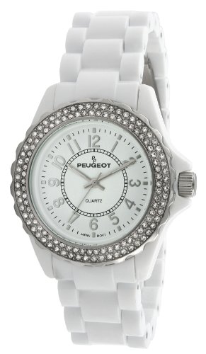Buy Now! Peugeot Women's 7055WT Swarovski Crystal Bezel White Acrylic Watch